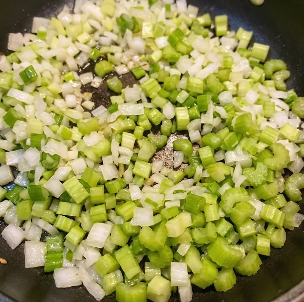 Start with intention. Chop celery, onions, and bell peppers into small, even pieces—this ensures they melt seamlessly into the Cajun Seafood Dressing instead of standing out awkwardly.